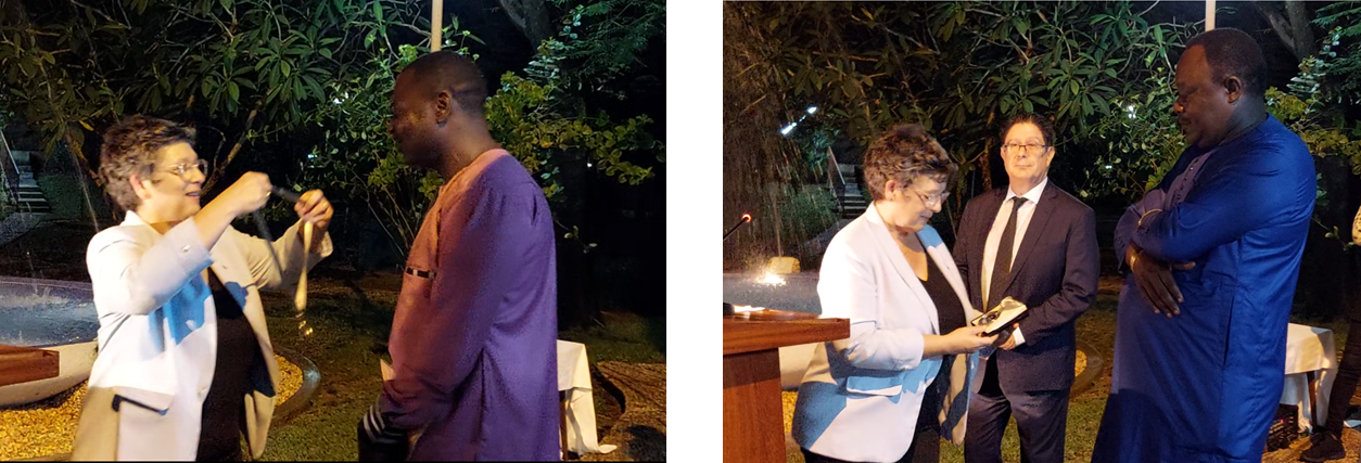Valérie Verdier, Présidente Directrice Générale de l’IRD leur a remis les médailles devant l’ambassadeur de France et un parterre composé d’une délégation de la Direction de l’IRD, du Représentant de l’IRD au Bénin, et de leurs collègues hydrologues du Nord et du Sud.